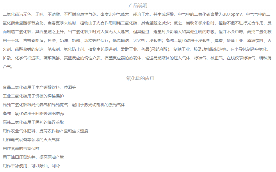 簡要(yào)描述:産品名稱:高(gāo)純二氧化(huà)碳 CO2其他(tā)名稱:液體(tǐ)二氧化(huà)碳分(fēn)子(zǐ)式:CO2UN NO:1013(氣) 2187(液态↕) 1845(固)CAS NO:124-38-9産品純度:99.999%包裝說(shuō)明(míng):40L鋼瓶22kg/瓶...